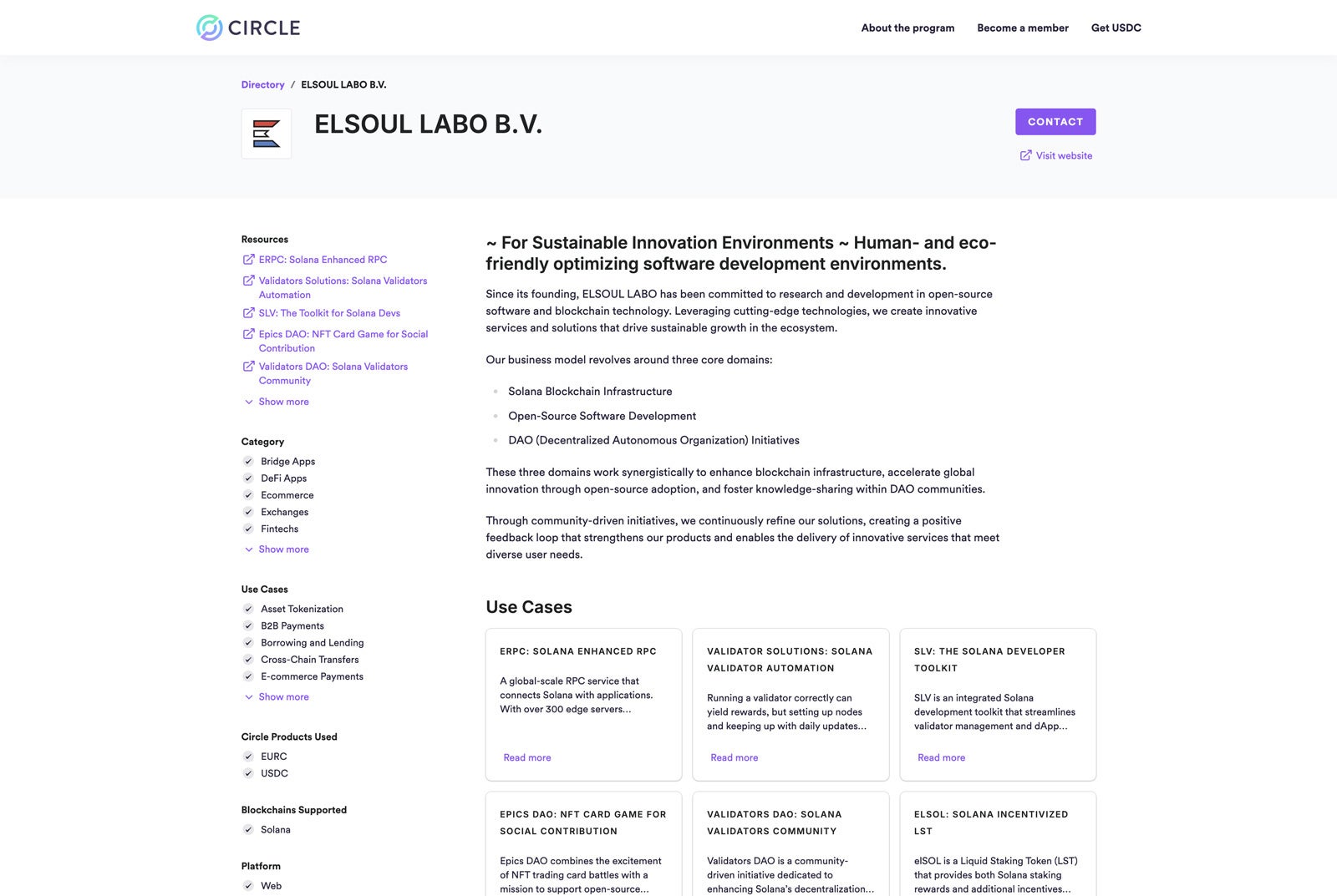 ELSOUL LABO B.V. 公式パートナーページ: https://partners.circle.com/partner/elsoul-labo-bv