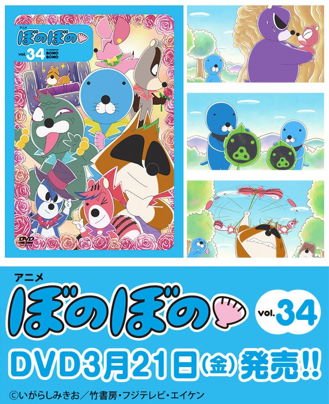 株式会社竹書房(東京都千代田区 社長:宮田純孝)は、フジテレビにて放映中のテレビアニメシリーズ『ぼのぼの』(いがらしみきお 著)のDVD第34弾を3月21日(金)に発売いたしました。