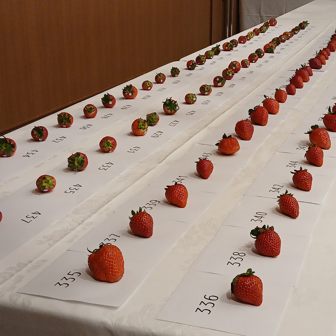 天候が悪条件の中、甘味だけでなく酸味がしっかりある品も多くレベルの高い品評会となりました。かたさ、果汁の多さは様々で個性的ないちごもあり、好みにあわせて品種やブランドを選ぶ時代が到来したように感じます。今回より部門賞を設けより多くのいちごに賞を授与し品評しました。