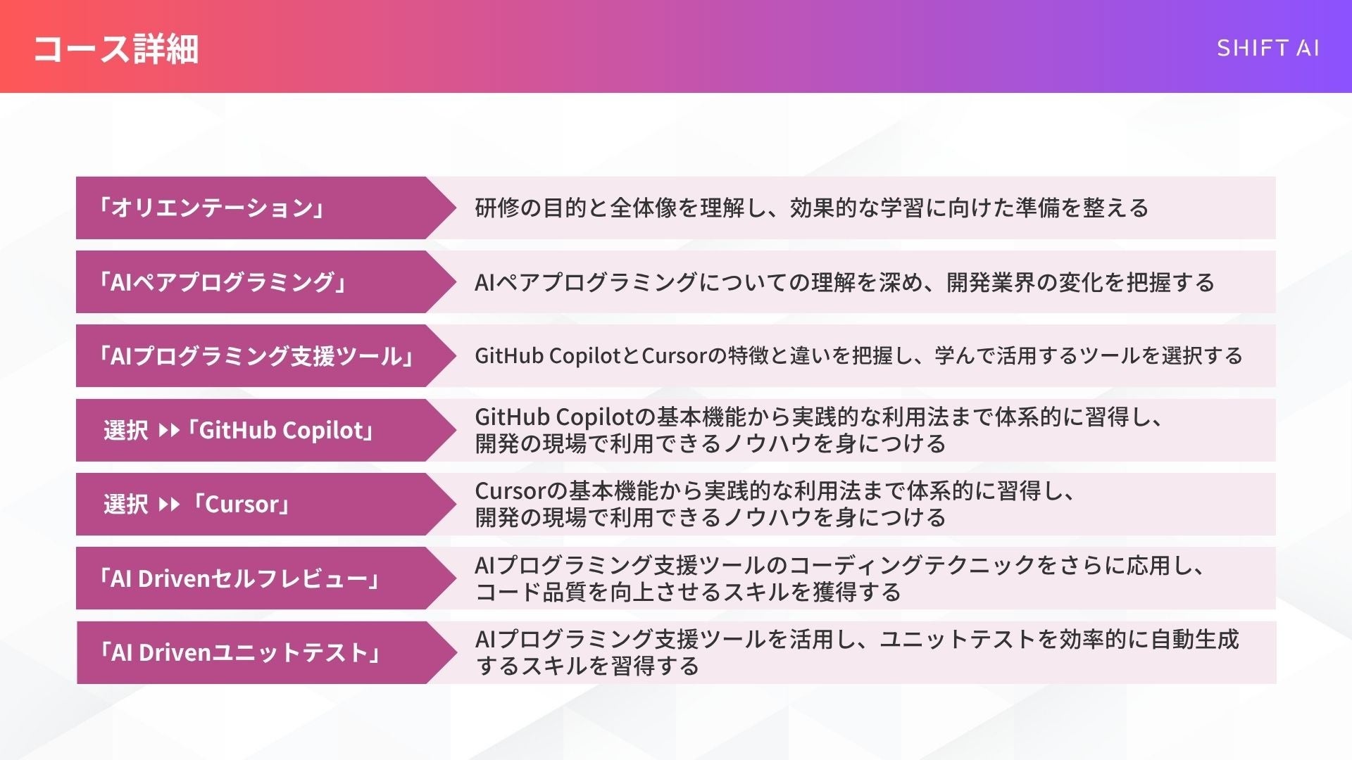 法人向け生成AIリスキリングサービス SHIFT AI for Biz2025年6月6日【AI Drivenエンジニアコース】に「ユニットテスト編」を新たに追加