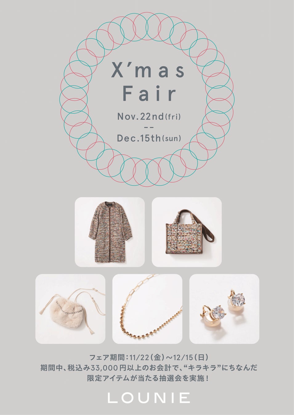 アイア株式会社(本社 東京都渋谷区/代表取締役 石澤智子)が運営する、オリジナルブランド「LOUNIE(ルーニィ)」は、2024年11月22日(金)~12月15日(日)までの期間、「クリスマスフェア」を開催します。期間中、税込み33,000円以上お買い上げの方に抽選で、"キラキラ"にちなんだの限定アイテムをプレゼント。