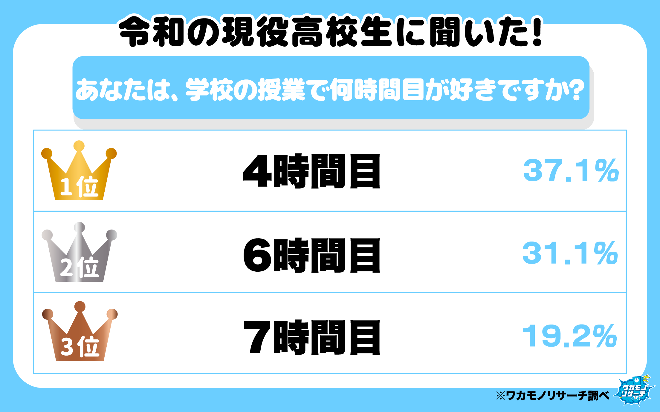 37.1%の高校生が「4時間目」と回答し、第1位となりました!