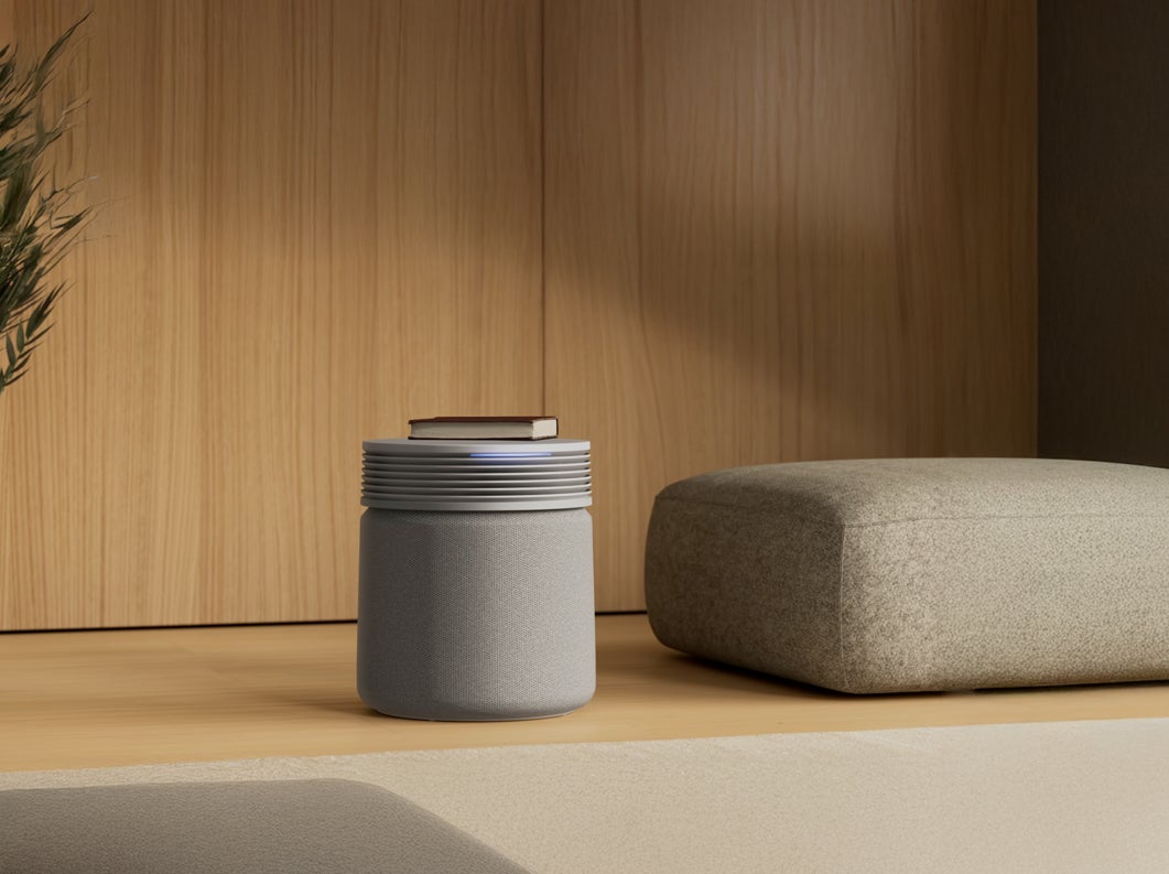 サイドテーブルとしても使えるデザインで、家具と自然に調和します。本体カラーはライトグレーで、多様なプレフィルターやインテリアにマッチします。別売りのプレフィルターはスウェーデンの自然にインスパイアされた6色から選べるので、部屋に合わせてカスタマイズ可能。