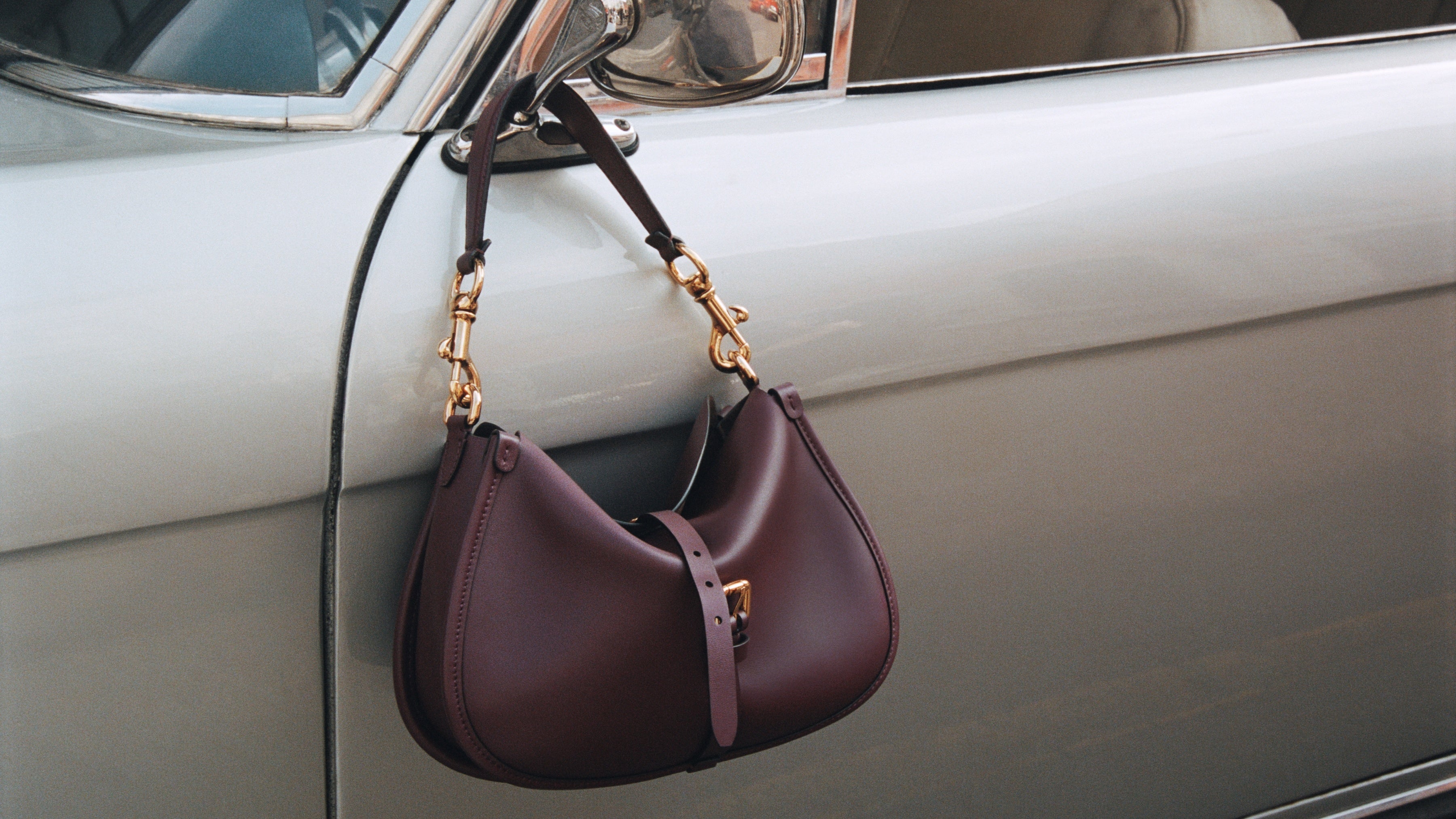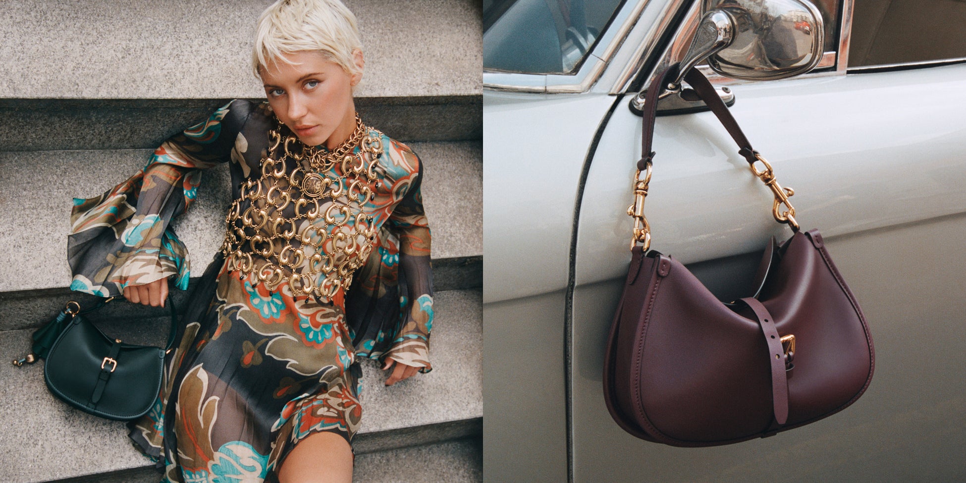 オリジナルのラウンドフォルムは、構造をあえてくずしたデコンストラクトなムードで再構築。プロポーションは完全に再設計され、トップにはミニマルなフラップを配し、ペガソの刻印を施したコイン型の留め具、ペイズリー柄をあしらったカラビナ、そして馬具の世界に着想を得たローラーバックルなど、ディテールのひとつひとつにブランドの美学が息づいています。