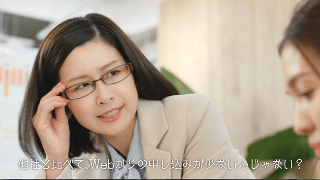 今回発表された動画CMは、どこのWebマーケティング担当者もが抱える課題をテーマとし、当サービスを利用することにより、問い合わせや制約率向上が見込めることを示唆する内容となっております。