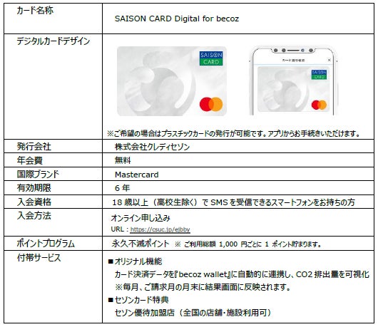 国内初、決済データに基づきCO2排出量を可視化できるクレジットカード 『SAISON CARD Digital for becoz』発行開始