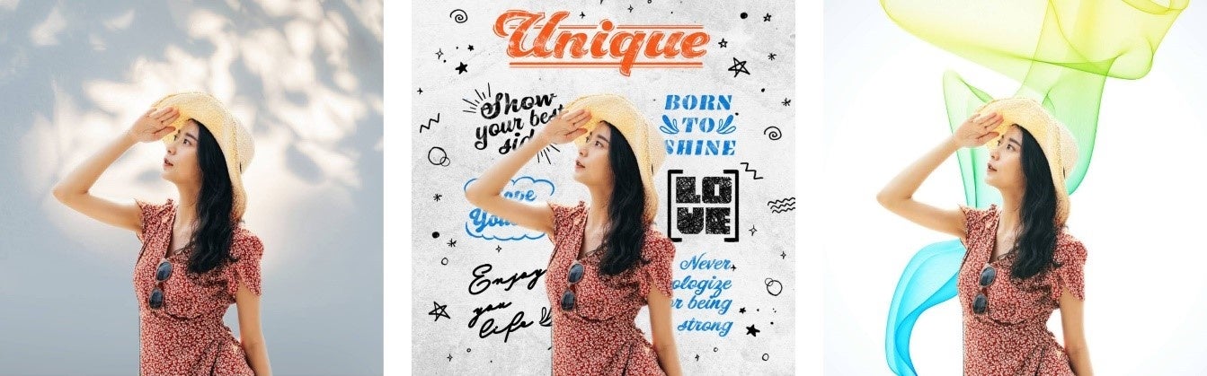 ■ 自動で人物を切り抜き、デザインされたおしゃれな背景で演出