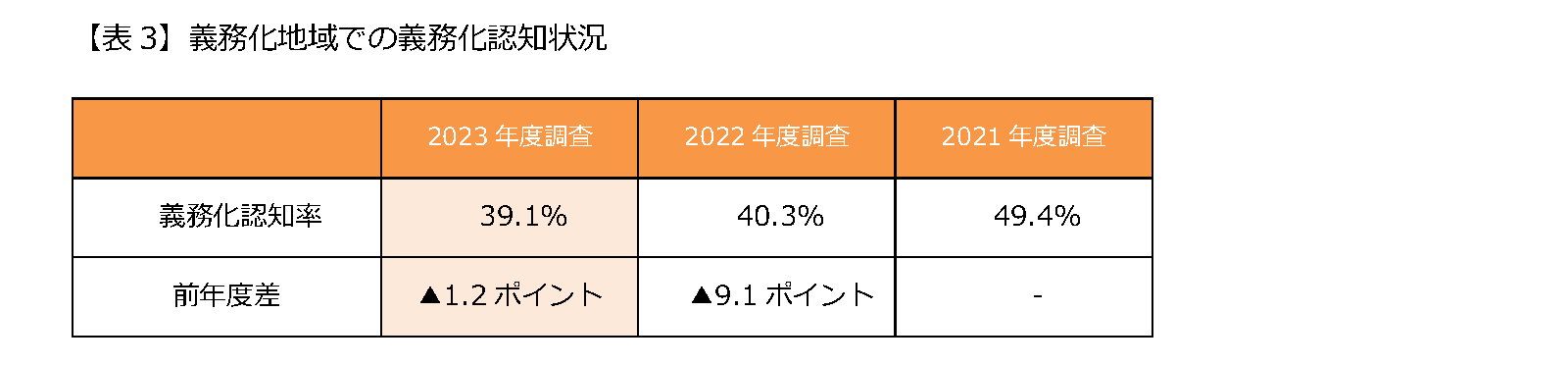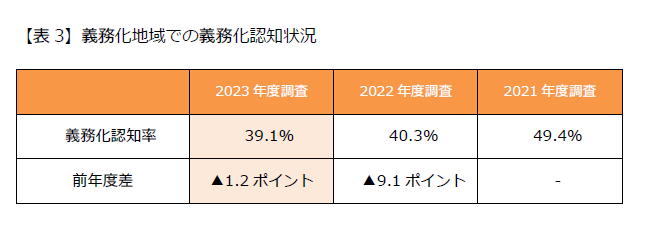 3. 自転車保険の加入義務化の認知率が低下【表3】【表4】