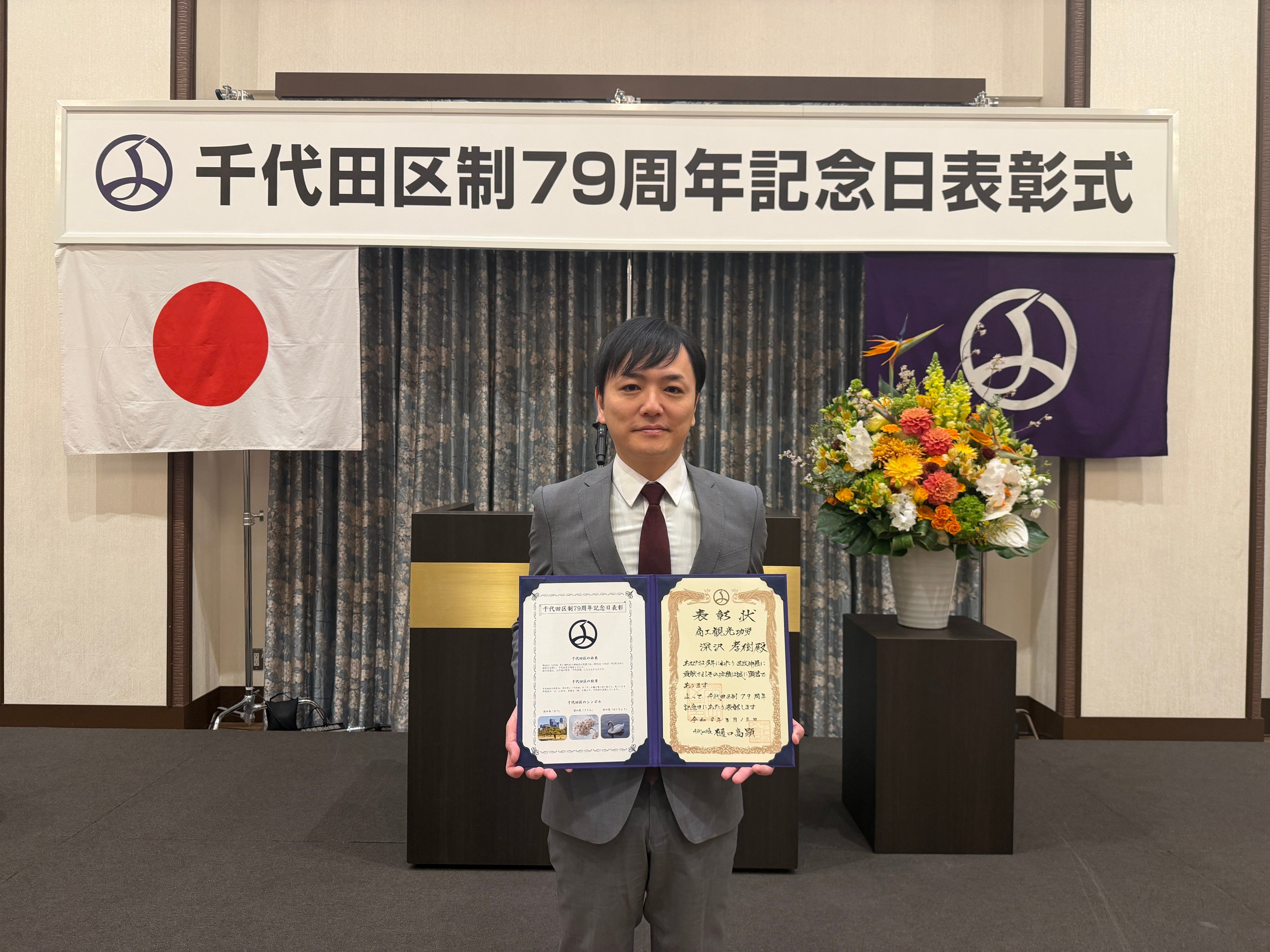 千代田区制七十九周年記念日表彰式にて、当社代表・深沢孝樹が「商工観光功労者」として表彰