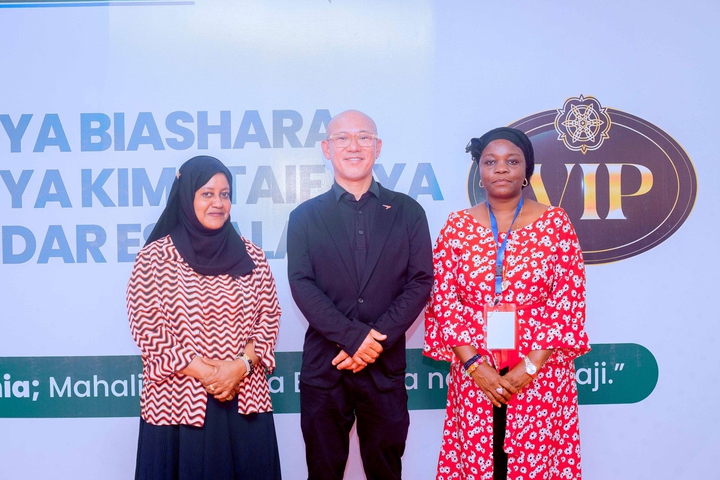 TAN TRADE Director General Latifa M. Khamis(左)、ビィ・フォアード 代表取締役 山川 博功(中)、