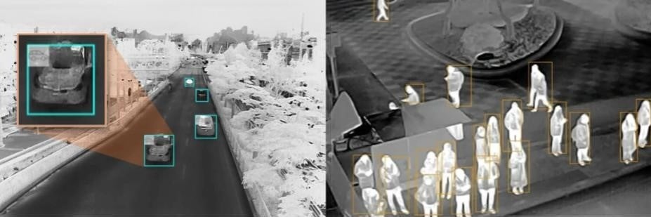 -40°Cから550°Cまでの幅広い温度検出範囲で監視用途を大きく拡大し、サーマル映像でAI検知の革新技術でオブジェクトを検出可能に