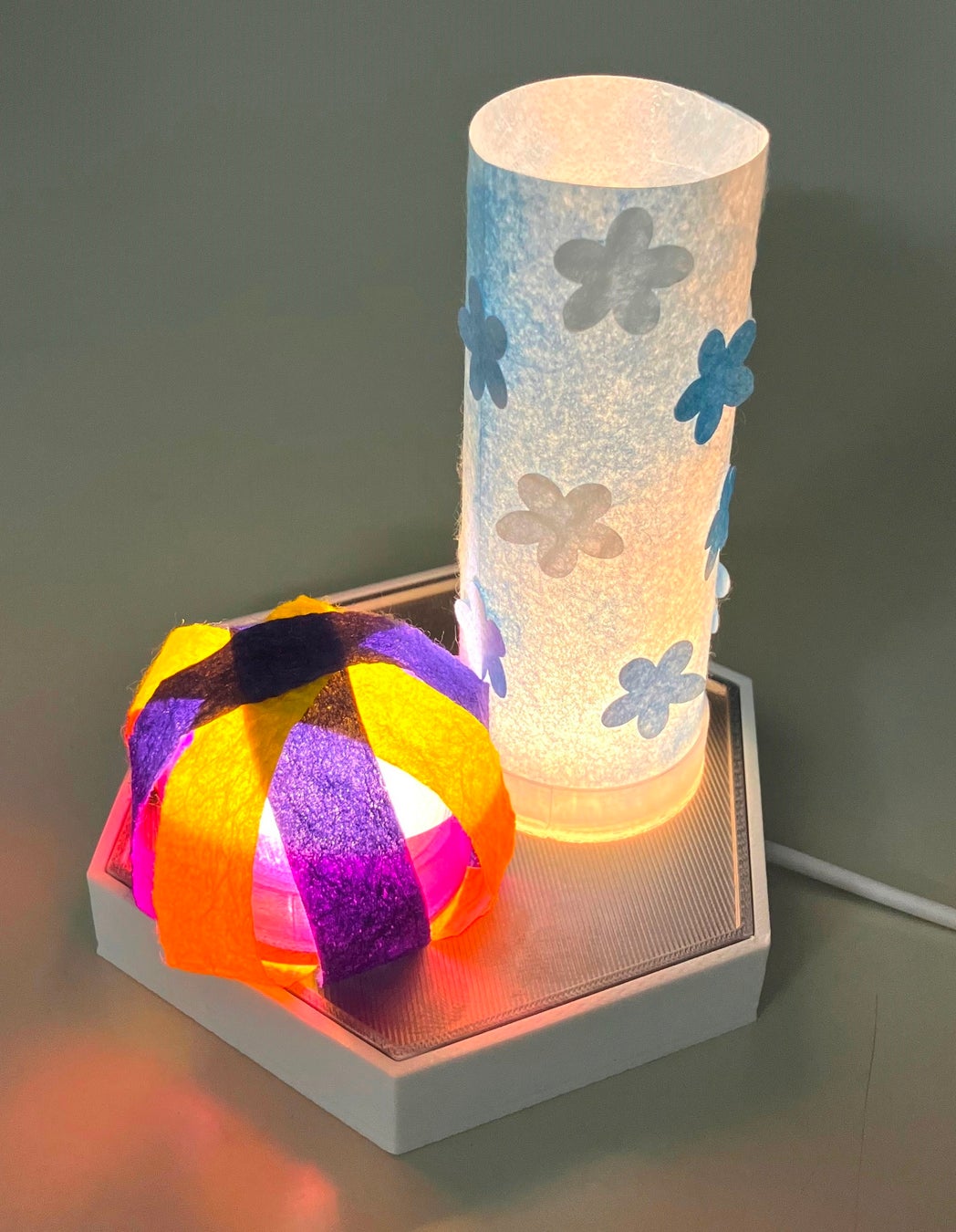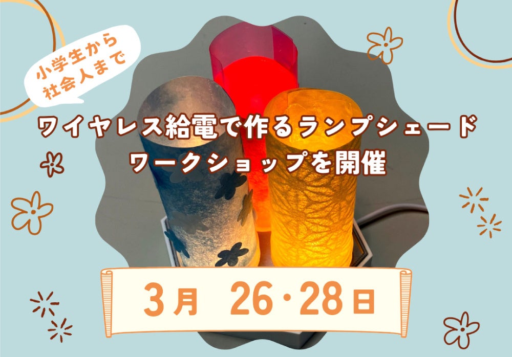 ワイヤレス給電工作キットを使い、筒形・手毬型・透かし彫り風などの簡単なランプシェードを作成していきます。完成したランプシェードは、ワイヤレス給電工作キットとともにお持ち帰り頂けます。時間は約1時間程度を予定しています。