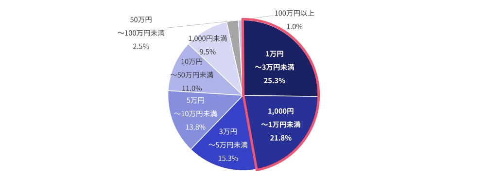 ②クレジットカード不正利用による被害額は、1,000円〜3万円未満が全体の47.1%を占めた。
