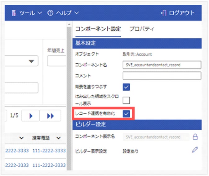 LC版Studioでレコードフォームの「レコード連携を有効化」プロパティをONにしてデプロイし、フレキシブルデータテーブル側も機能を有効化するだけで、レコードフォームがフレキシブルデータテーブルと連携し、レコードも連携されます。