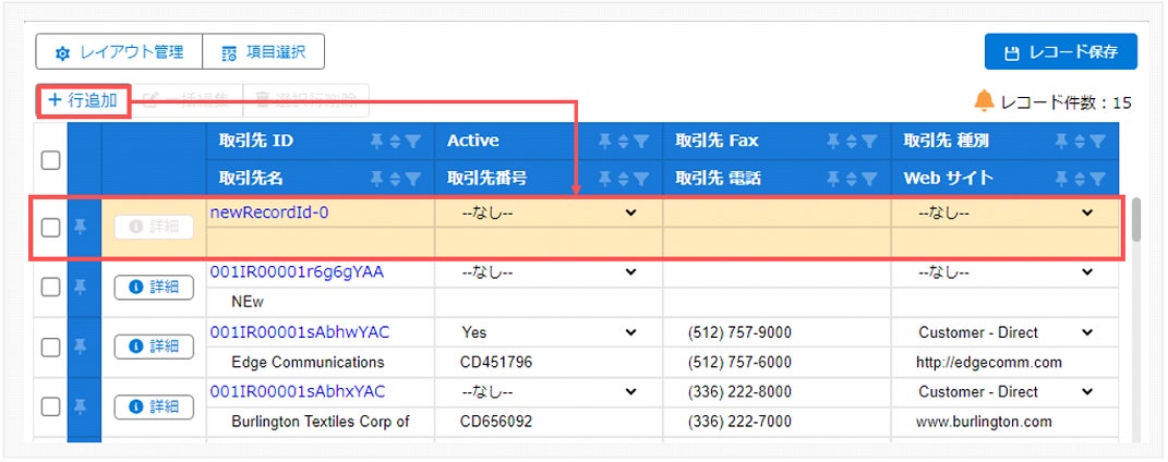 - 新規行は最上部に追加され、分かりやすくハイライト表示