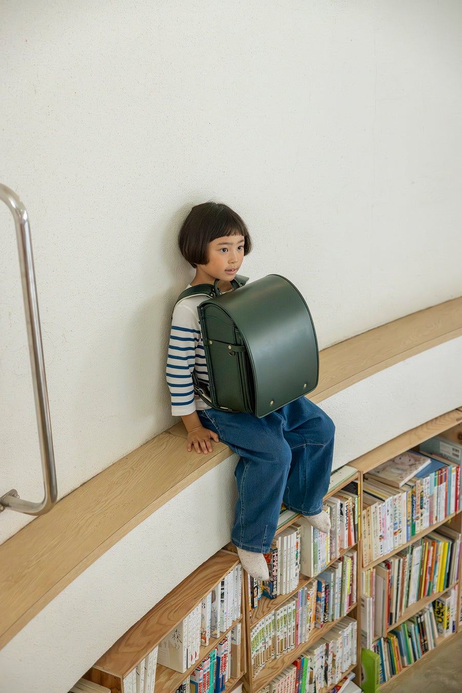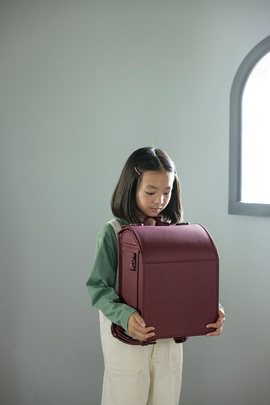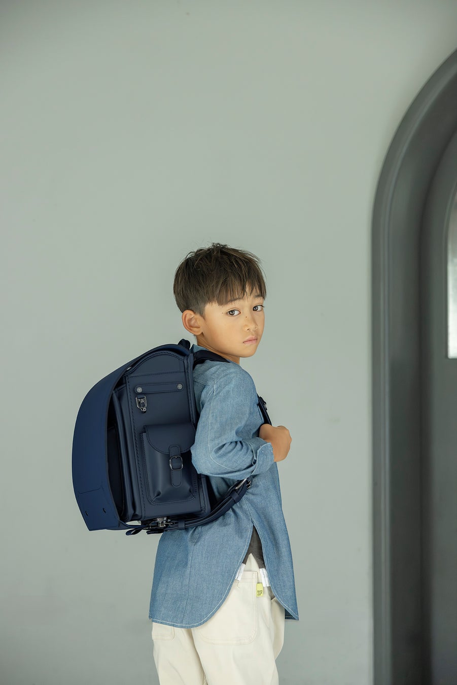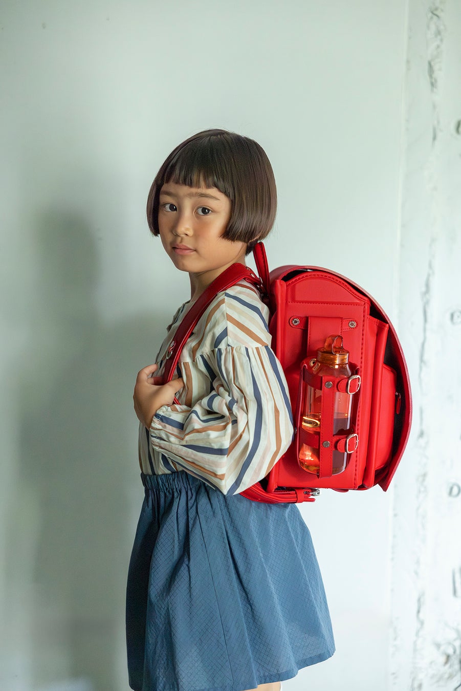 プロダクトデザイナー、柴田文江さんが手がけた、まったく新しいデザインのランドセルです。今一度ランドセルをカバンとして捉え直し、上部を開閉口としました。そのため低学年でも開け閉めしやすく、荷物も取り出しやすくなっています。 また「かぶせ」がないために軽量で、それでいて一目でランドセルとわかる四角い形に仕上げてあります。定番の4色に加えて、新色のボルドー、ネイビーに合わせ、背面にはそれぞれ柴田さんオリジナルのチェック柄があしらわれています。