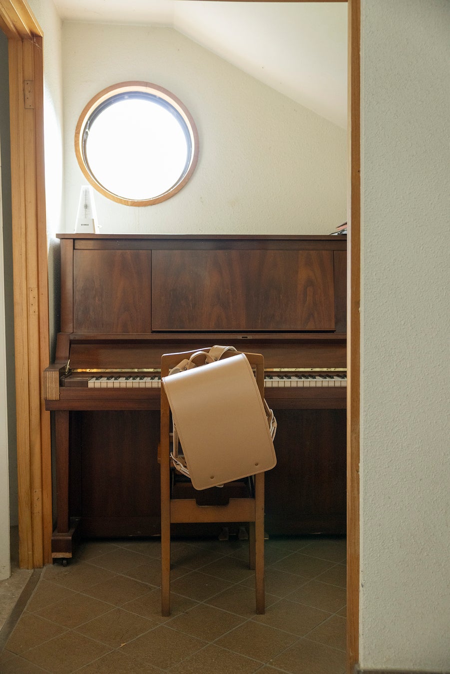 +CELにおいてもっともベーシックな〈PLAIN〉も、進化を続けています。プロダクトデザイナーの柴田文江さんデザインによる、+CELオリジナルの金具や鋲を採用。背負いやすさ、安全性、耐久性といった大切な機能は担保しつつ、上質な佇まいを実現しました。2027年モデルから新色のスカイが加わりました。ランドセルの蓋である「かぶせ」の裏には、染色家・柚木沙弥郎さんの作品をあしらい、毎日の開け閉めの時間を優しく彩ります。