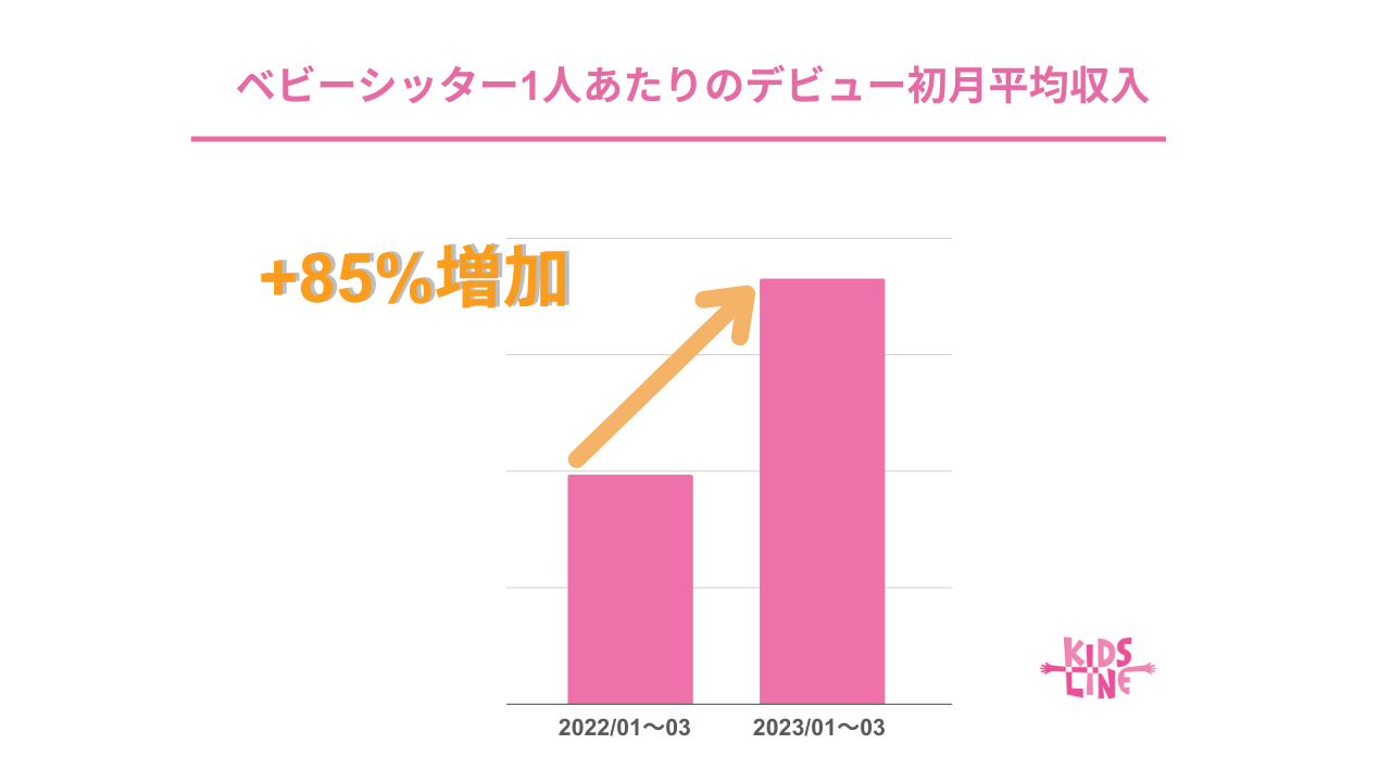 そして伴走支援を試験的に強化した結果、2022年1月〜3月と2023年1月〜3月を比較するとベビーシッター一人あたりのデビュー初月の収入は前年比で85%増加しました。