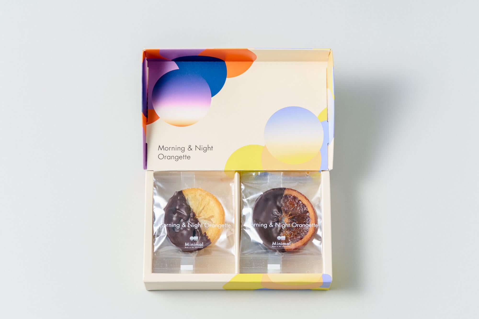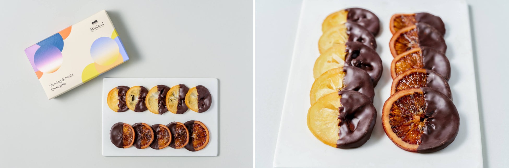Minimalのオランジェットが増量し、パッケージリニューアル。愛媛県産のレモンとオレンジ、2つの柑橘で表現する“朝と夜”がコンセプトの他にはないオランジェット。