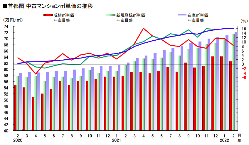 ※データ出典:公益財団法人 東日本不動産流通機構 月例速報 Market Watch サマリーレポート 2022 年 2 月度
