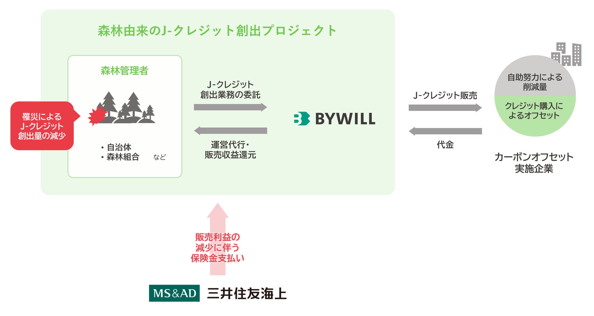 日本全国47都道府県のカーボンニュートラル実現を目指す株式会社バイウィル(本社:東京都中央区、代表取締役社長:下村 雄一郎、以下「バイウィル」)は、三井住友海上火災保険株式会社(本店:東京都千代田区、代表取締役社長:舩曵 真一郎、以下「三井住友海上」)が取扱開始した「森林由来J-クレジット補償保険」(以下、「本保険」)を共同開発しました。