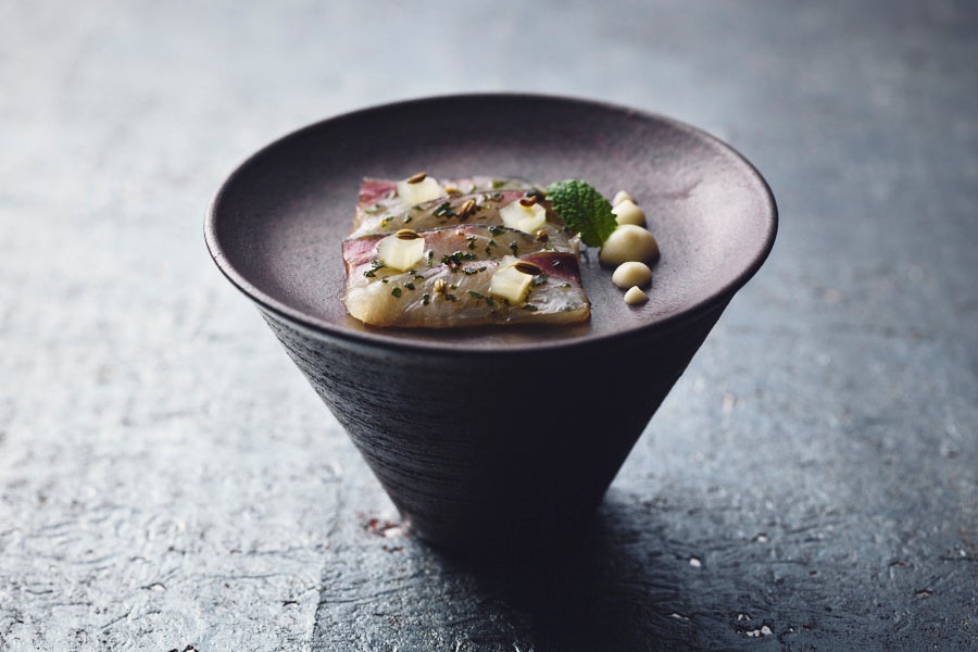 - 縞アジのカルパッチョ フェンネルとレモンバーム