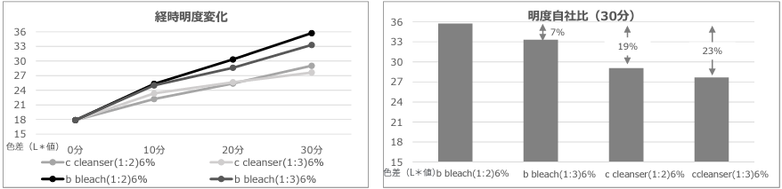 脱染に必要な過硫酸カリウム、過硫酸アンモニウムの配合を必要最小限に抑えることで、アンダーレベルを削りすぎることなく脱染ムラを抑制。17レベル以上のアルカリカラーや塩基性カラーへの脱染に適しています。