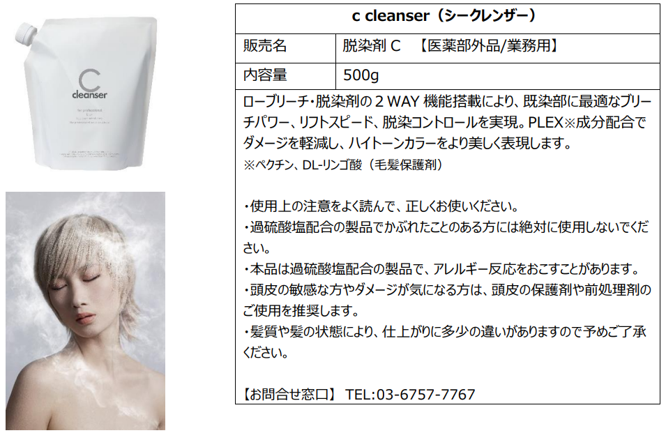 ローブリーチ・脱染剤の2WAY機能搭載 『c cleanser』 、3月22日より発売開始