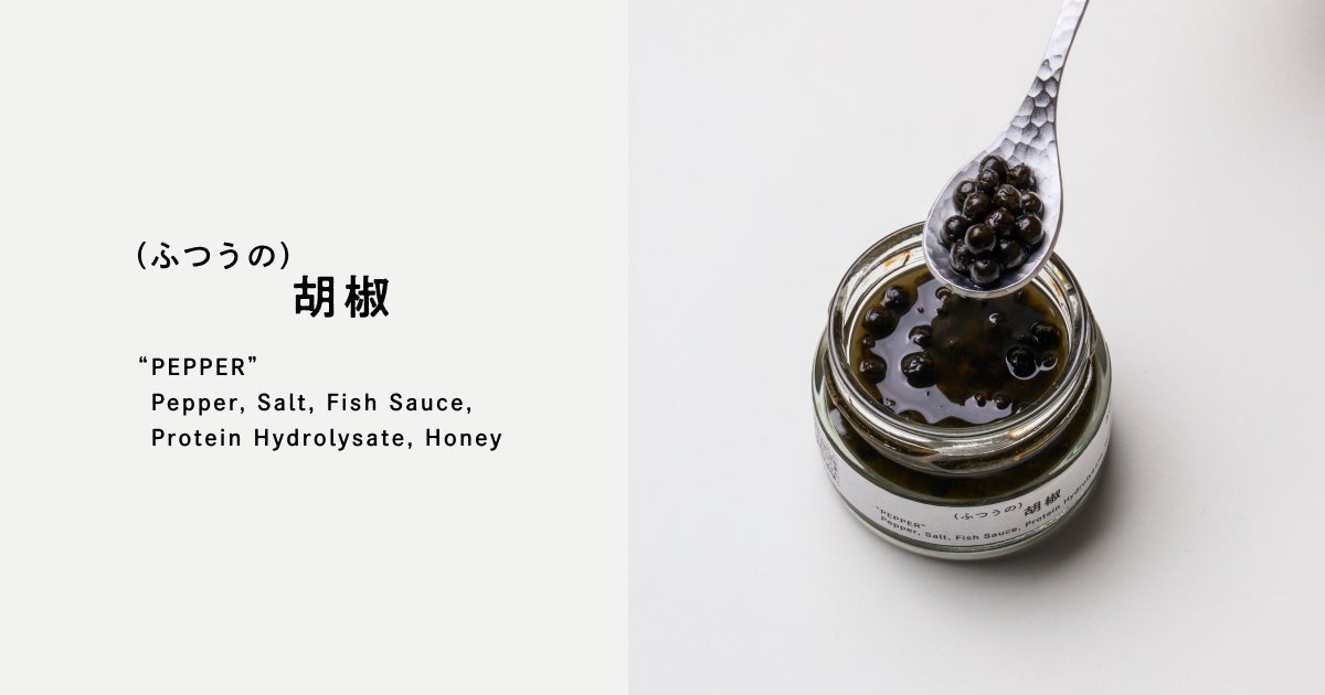 黒胡椒を単なる塩水ではなく、食塩に漬け込んだカタクチイワシから丁寧に抽出した魚醤(コラトゥーラ)に漬け込み、さらに隠し味のハチミツを垂らし、漬け込んだうま味を伸ばし、辛味の角だけをとります。この2重の漬け込みと隠し味で、プチっと弾けるような食感のあと、やさしい刺激が口の中に広がり、やわらかで丸みのある上品な刺激を実現しました。おつまみのようにそのままでも、料理のアクセントとしても、仕上げに添えるだけでも、様々なシーンで食卓を底上げします。