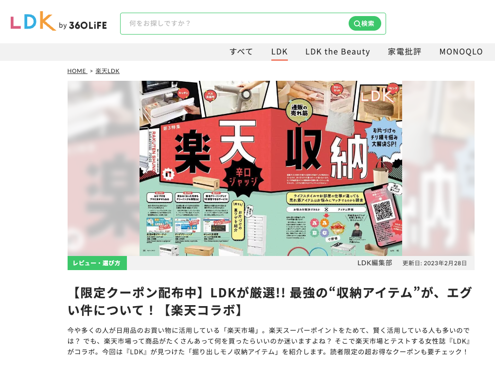 【3月14日まで】限定クーポンも要チェック!テストする女性誌『LDK』で楽天市場の収納グッズを大特集