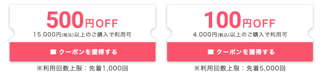 掲載アイテムに使える今だけのお得なクーポン