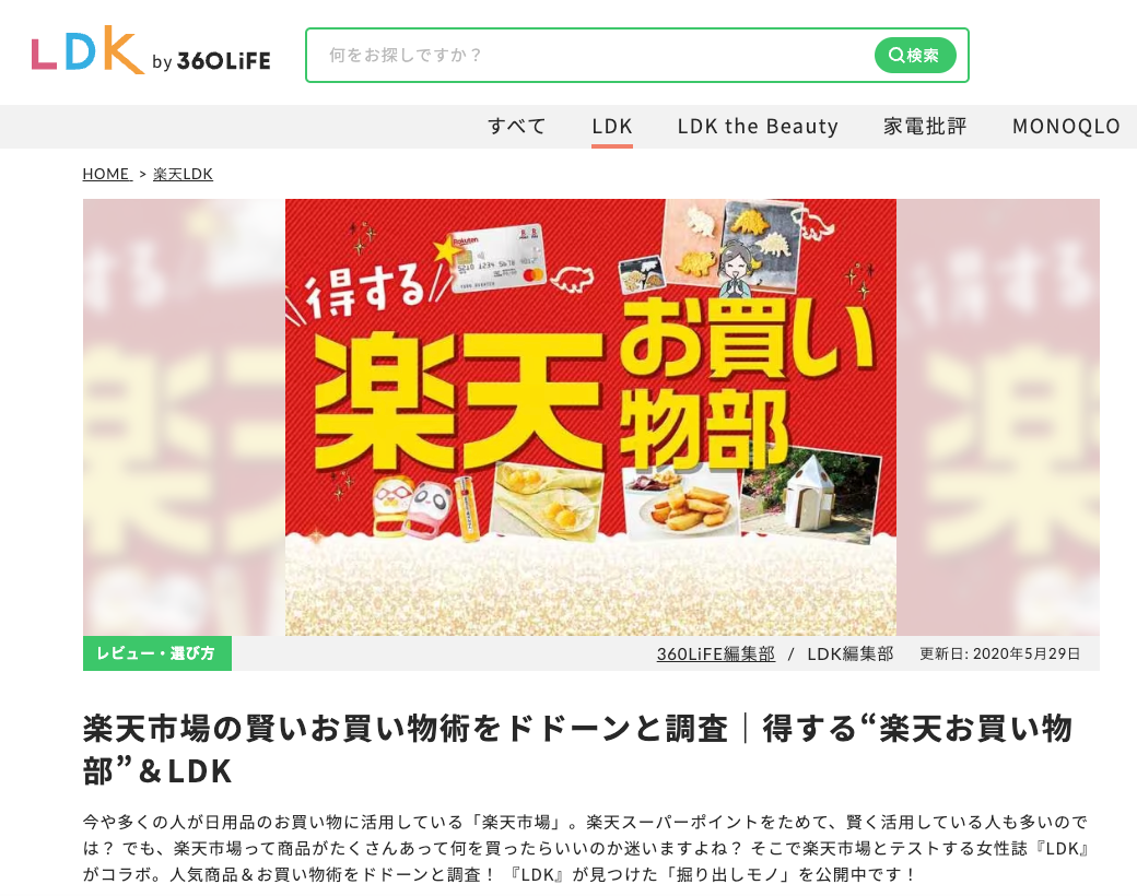 『LDK』や『家電批評』など晋遊舎のテスト誌によって蓄積された本音の商品情報が掲載されている商品評価サイト「360LiFE(サンロクマル)」。楽天やAmazonなどの販売サイトにリンクしており、気に入った商品を購入できます。