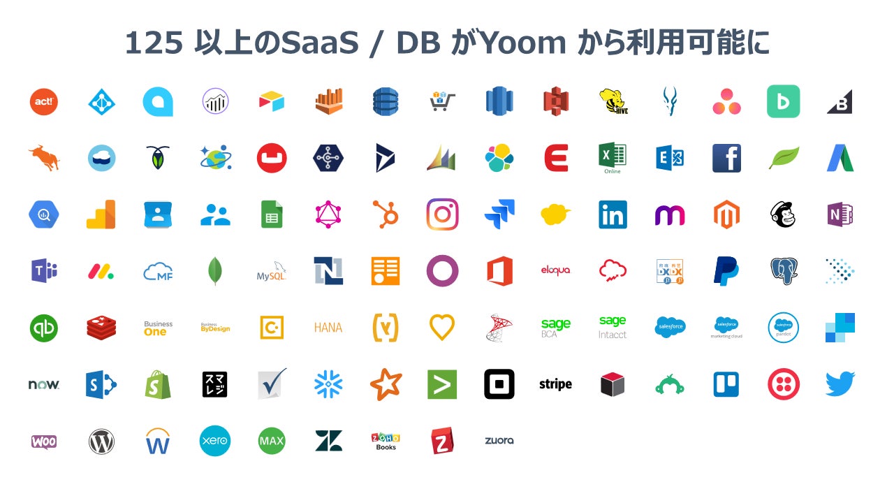 CData Connect Cloud とYoom を連携することで、MySQL やPostgreSQL などを用いてスクラッチで開発された自社システムなどともCData Connect Cloud を通じて連携することが可能となりました。これまでYoom が連携を強化してきたパッケージ型のSaaS ツールに加えて、CData Connect Cloud を通じて125種類以上のデータソースに接続できるようになります。