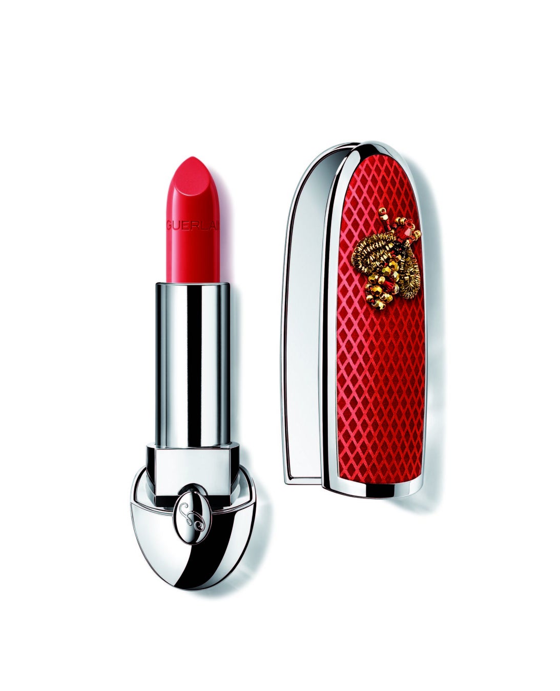 特別仕様のケースが包み込むのは 、ゲラン のベストセラーとなったサテン214 番のシェード。鮮やかなレッドが唇を際立たせます。