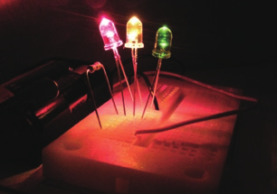 LED・抵抗・ブレッドボードなどを使った電子工作体験。自分で組み立てた LED を光らせ光の三原色について楽しく学ぼう!