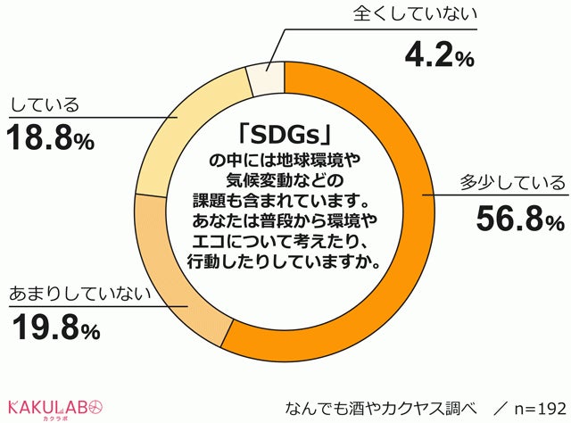次に、SDGsの中には気候変動や地球環境に関する課題も含まれていることから、普段、環境やエコについて考えたり、行動したりしているかを聞いてみました。