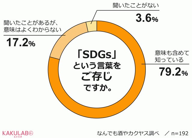 まずは「SDGs」という言葉を知っているかを聞いてみたところ、「意味も含めて知っている」と回答した人が79%に上りました。