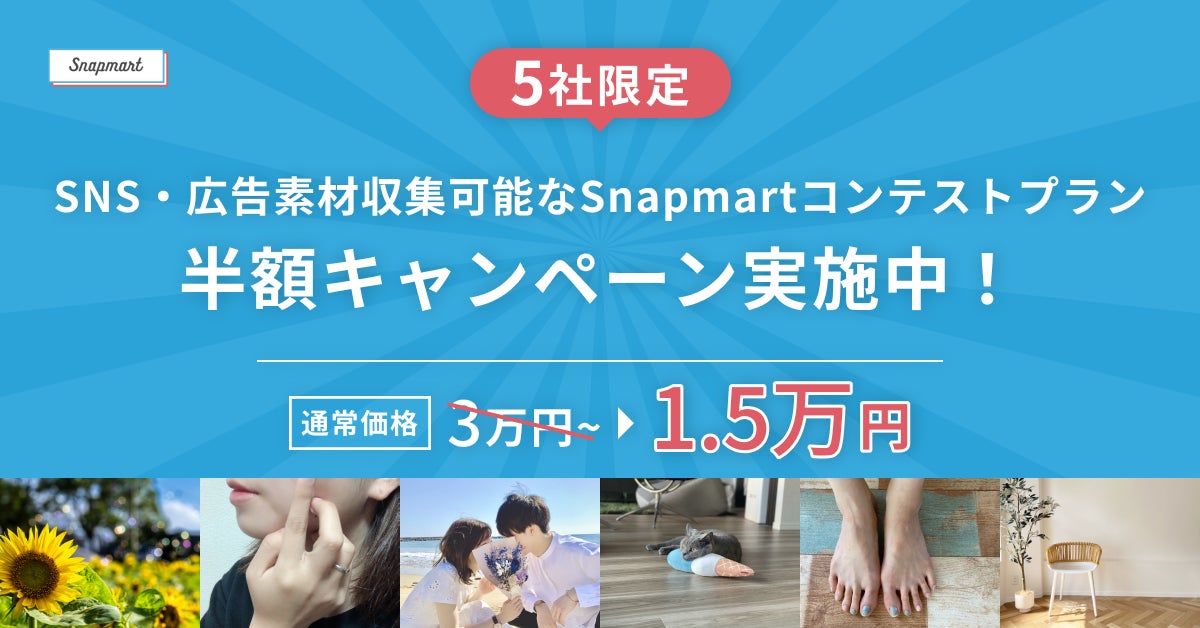 【5社限定】Snapmartコンテストプランが半額!SNS・広告写真収集の特別キャンペーン開催