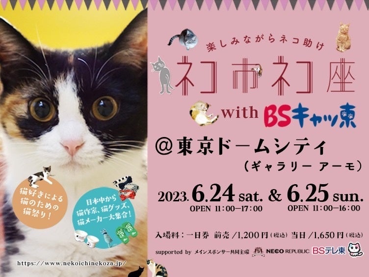 保護猫はかわいい!を広めるイベント「ネコ市ネコ座@東京ドームシティwith BSキャッ東」豪華なゲストのステージプログラム解禁!猫好きによる保護猫のための日本最大級保護猫イベント6月24日,25日開催
