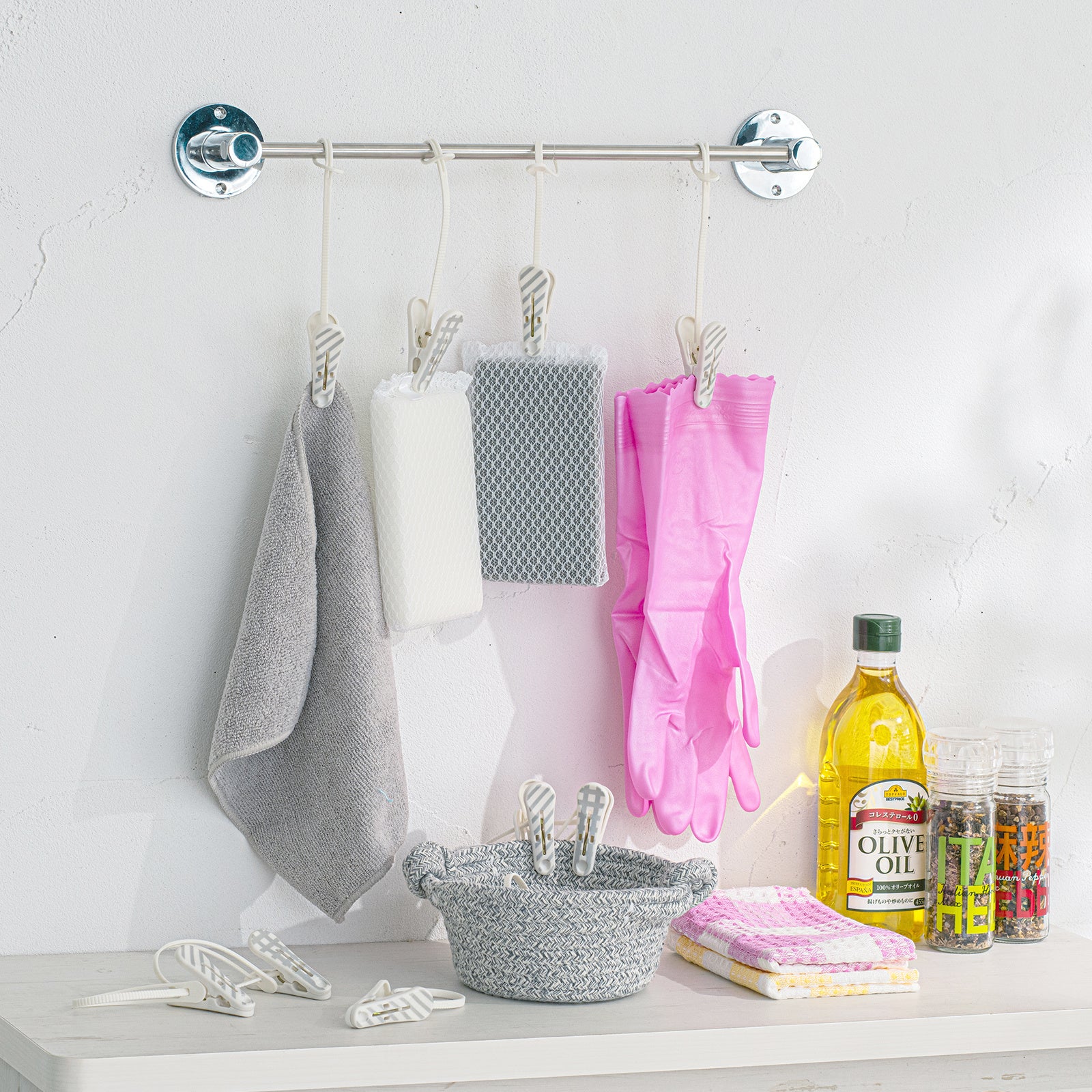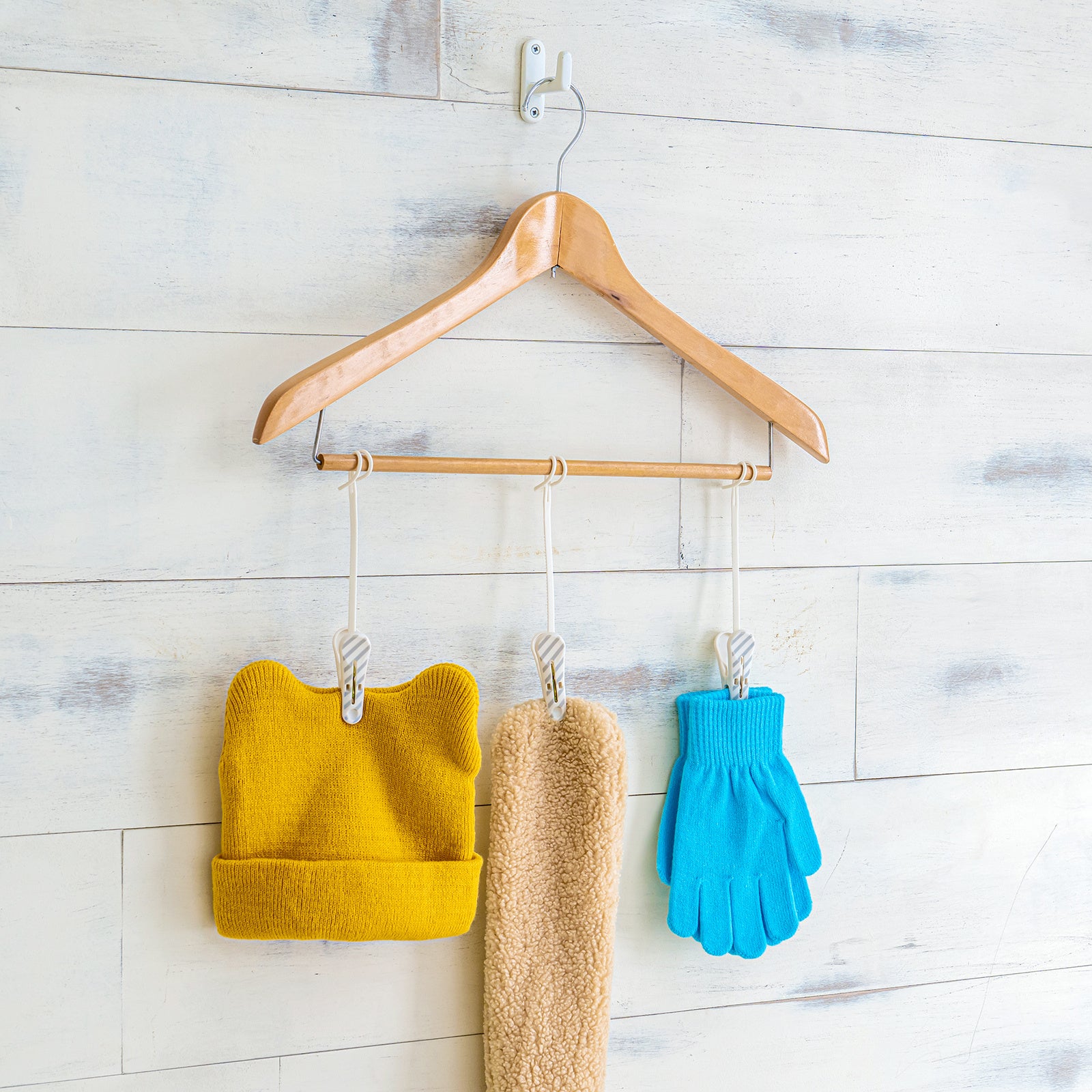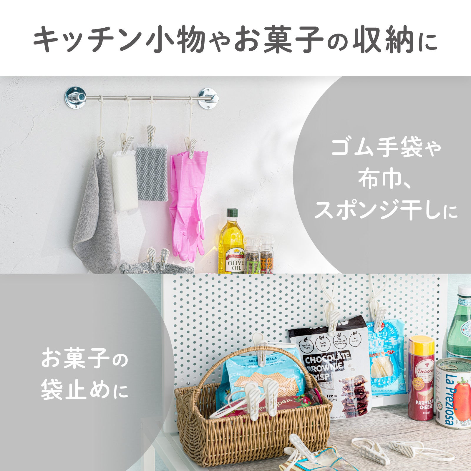クローゼットで帽子や手袋など小物収納、キッチンでゴム手袋や布巾、お菓子の袋止めなどさまざまに使えます。
