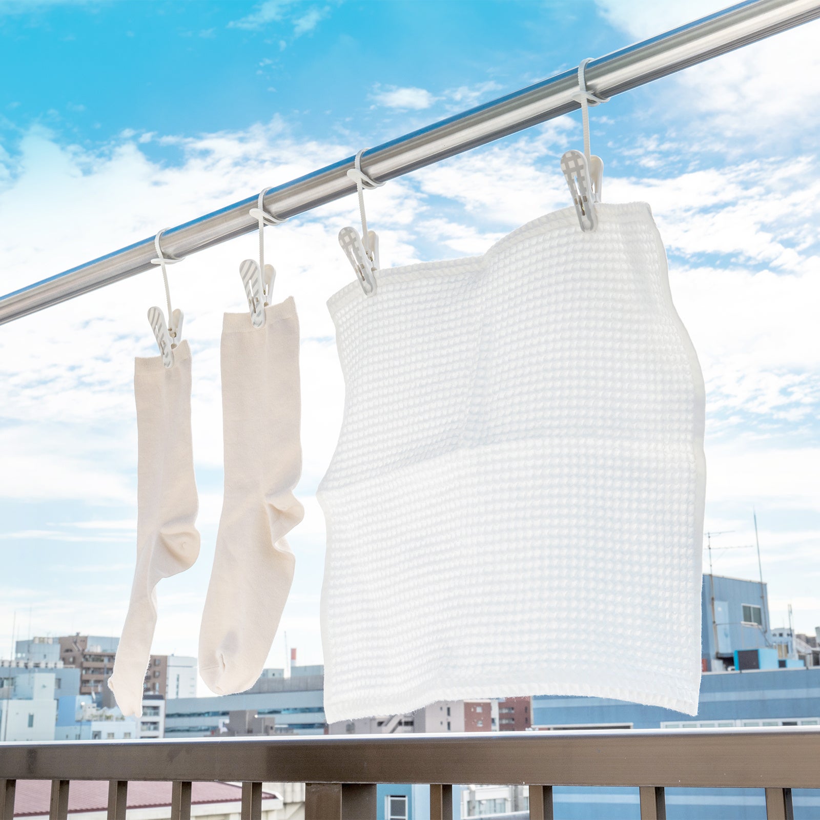 1. 物干し竿や椅子に固定できる便利なひも付き
