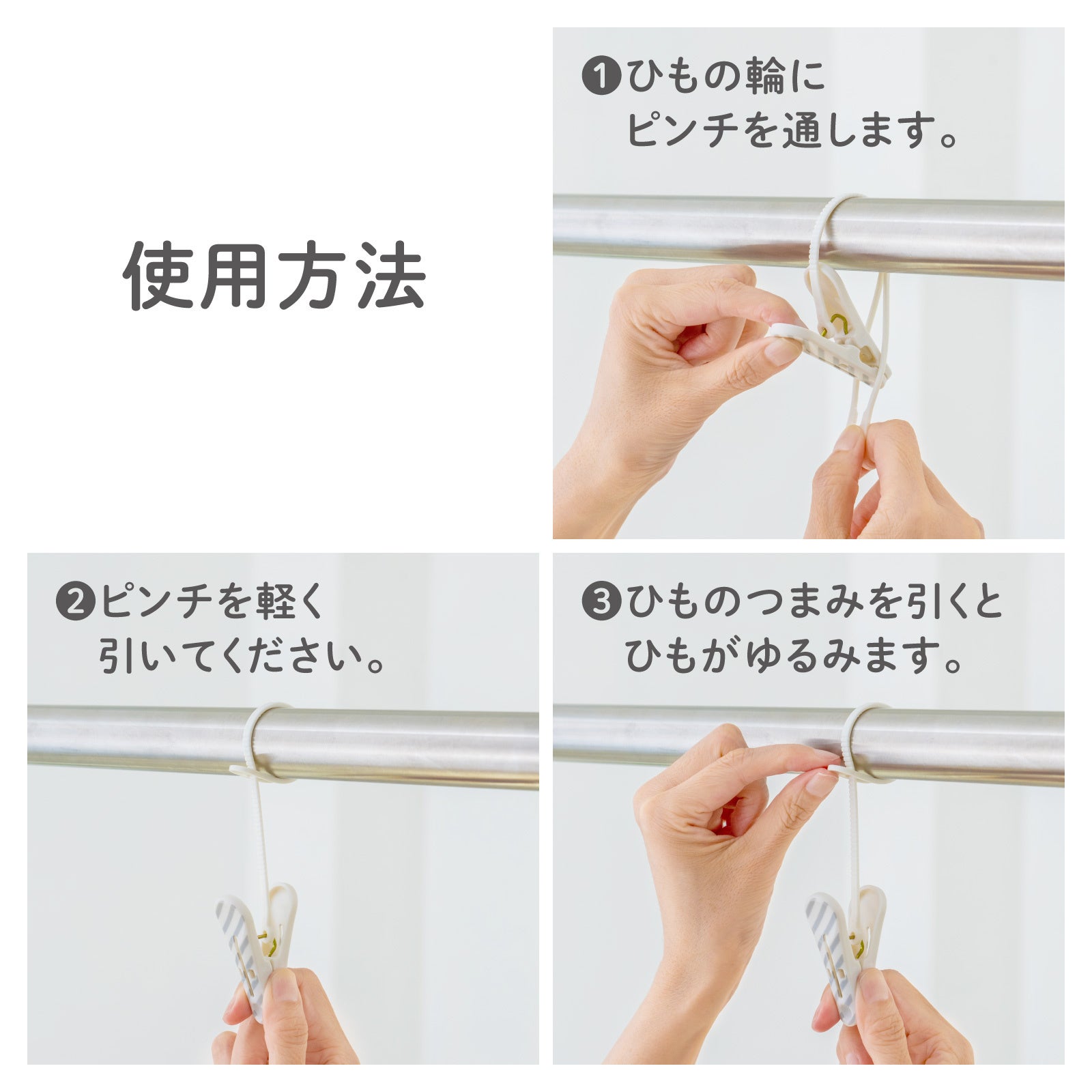 ~ 物干し竿や椅子に固定できる、ひも付きのつまみやすいピンチ ~