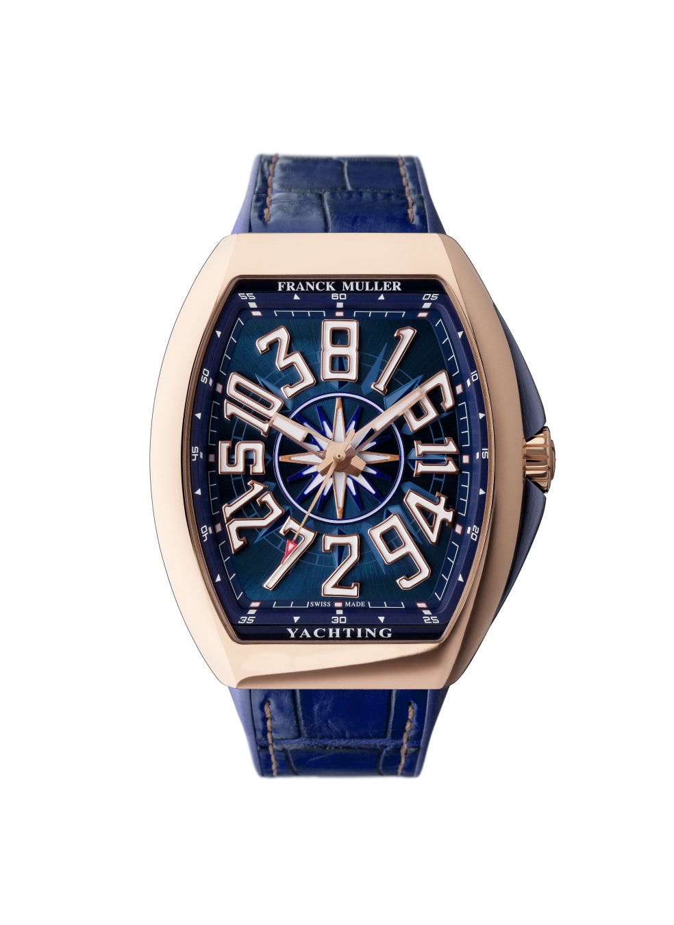 「ヴァンガード ヨッティング クレイジー アワーズ」は、ラグジュアリー ヨットの航海に触発されたディテールを随所にちりばめています。ケースフォルムは船艇の上質で引き締まった曲線美を表現し、ケースサイドにはリュウズガードを採用することで、よりスポーティさを演出。高い視認性を誇る文字盤は、独特のヴァンガード スタイルの数字で装飾され、大胆なデザインとの完璧な調和を成しています。18KPGケースは、広い海原を思わせるブルーダイアルまたは夜の海の幻想的な世界を表現するブラックダイアル、ステンレススティールケースは、ラグジュアリー ヨットから眺める晴れた空とそこに浮かぶ雲のような、ブルーダイアルまたはホワイトダイアルのカラーリングでの展開です。
