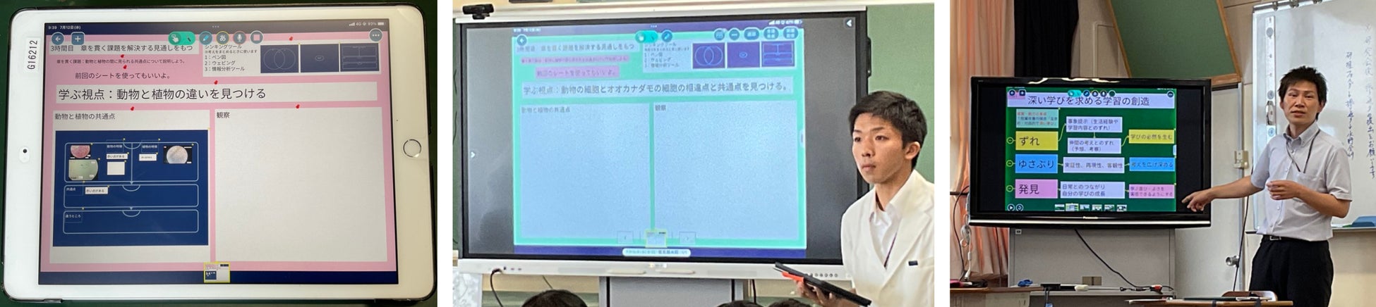 岐阜市立青山中学校で公開授業・理科部全校研究会が実施されました。当時、ロイロノート・スクールを使い始めて3カ月目だった青山中学校ですが、提出箱やシンキングツール、共同編集機能などを活用しながら、生徒が主体的に他者と対話し、自分の学びを深めていく授業が行われていました。