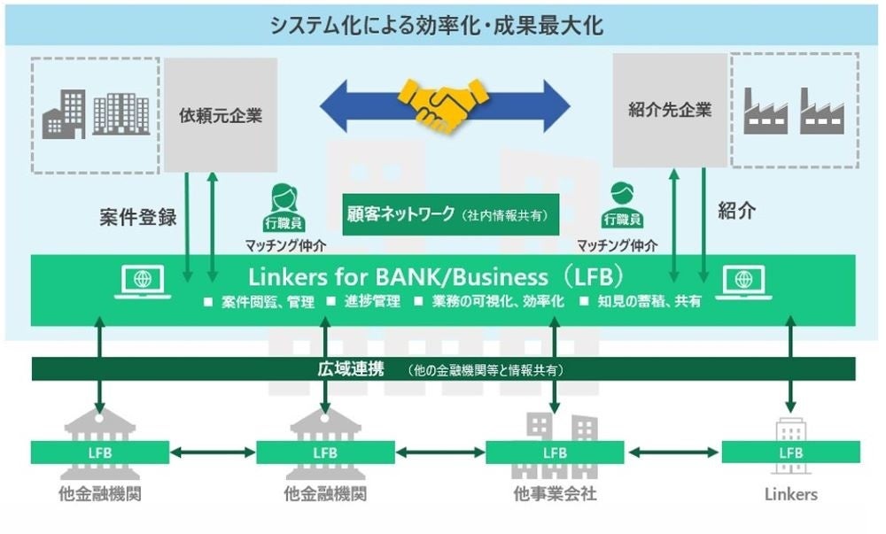 リンカーズ株式会社(本社:東京都文京区、代表取締役社長:前田 佳宏)は、このたび、株式会社あいち銀行(本店:愛知県名古屋市、取締役頭取:伊藤 行記)の発足に際し、同銀行におけるビジネスマッチング業務の一元管理と効率化および活性化を実現するため、弊社の「LFB(Linkers for BANK)」システムの統合支援を行いました。