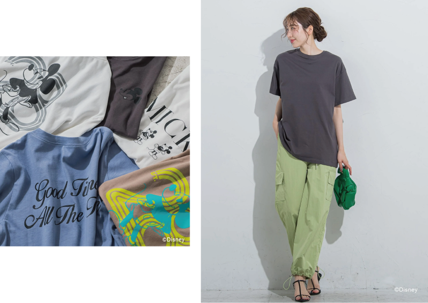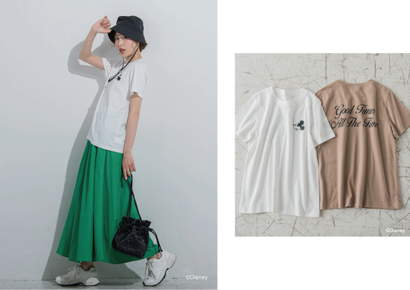 ディズニーの人気キャラクター「ミッキーマウス」を、自分らしく服を楽しむ女性に向けて、トレンド