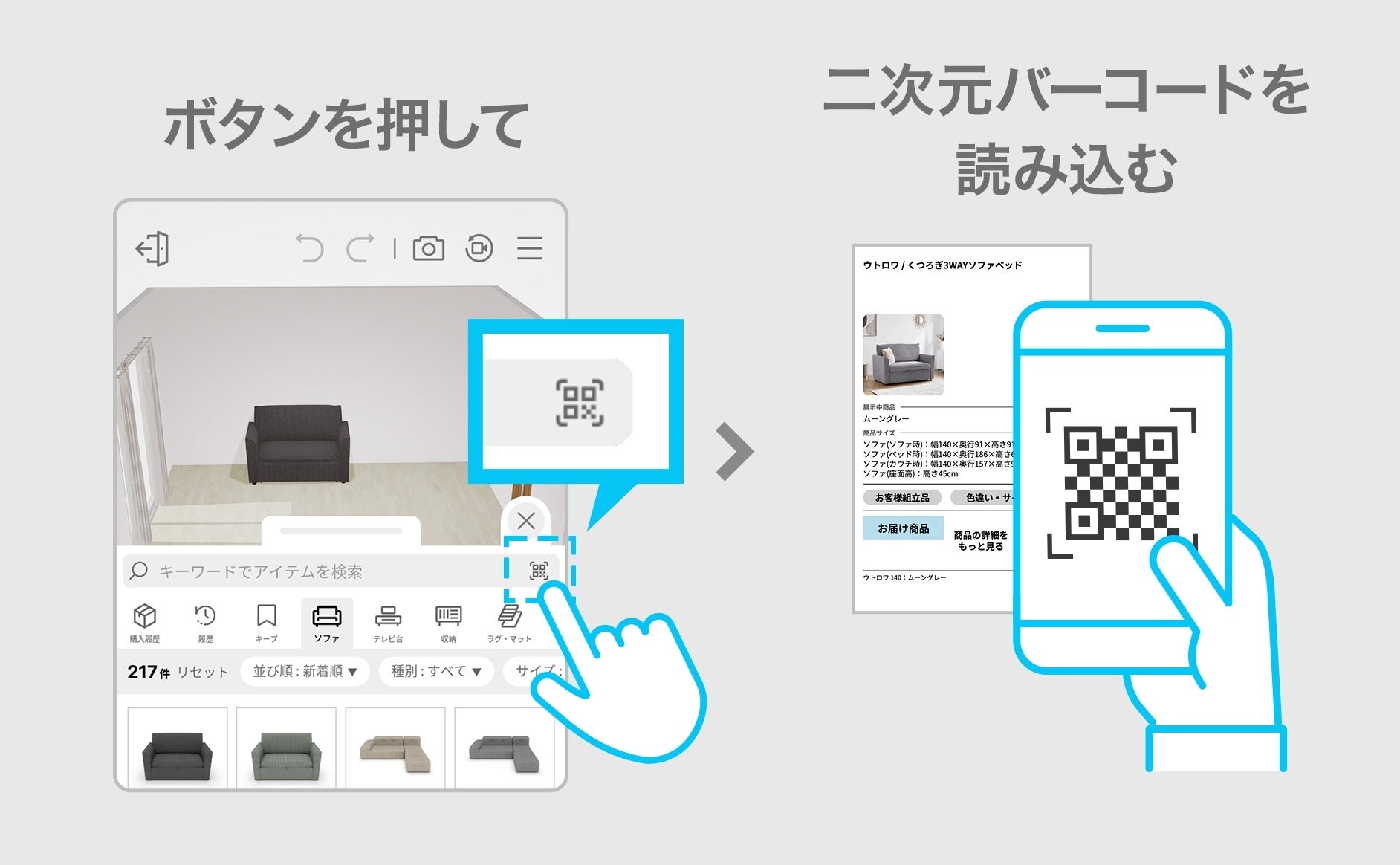 【2】店頭POPのQR読み込みで、その場でお部屋に「試し置き」