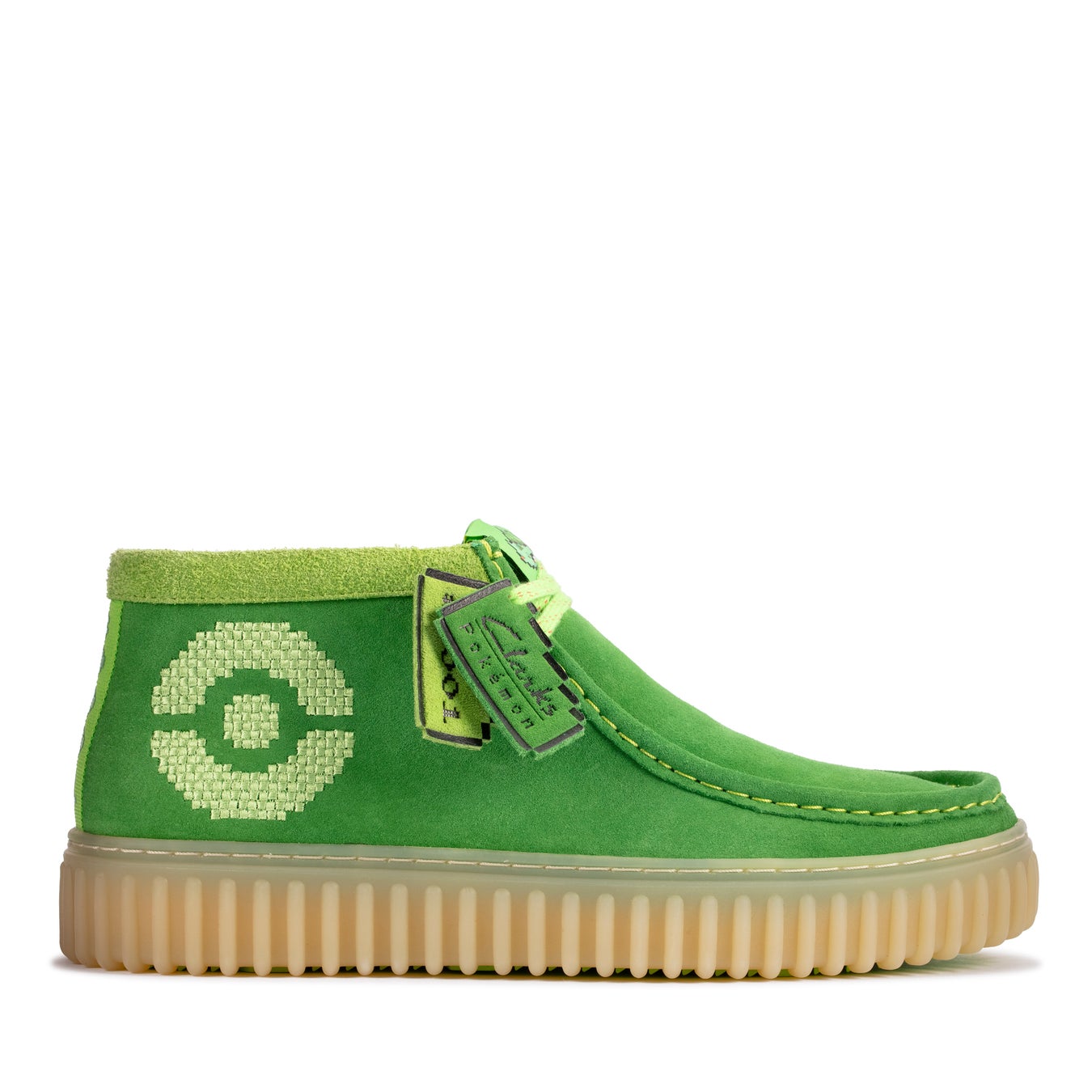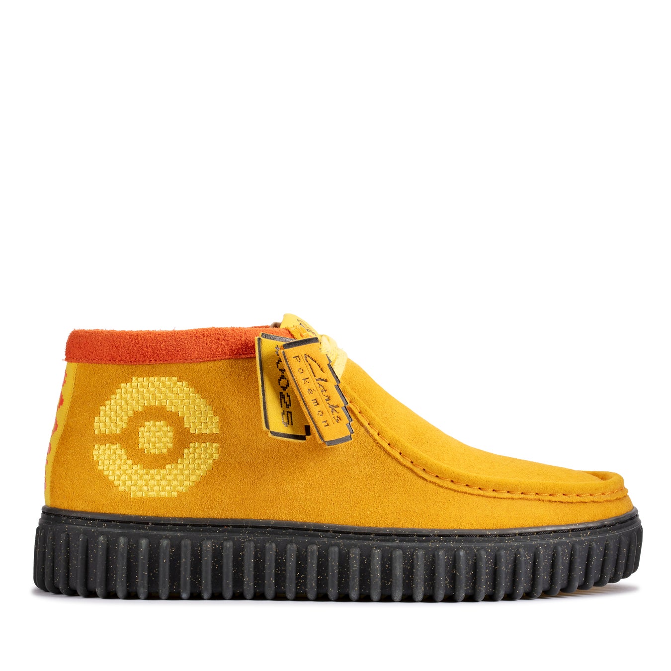 2023年12月8日(金)に発売されるClarks x Pokémonコラボレーション第2弾では、「トーヒル」のデザインにポケモンが登場します。フシギダネ、ヒトカゲ、ゼニガメ、そしてピカチュウが靴のタンにレトロゲーム風なピクセルアートの刺繍で施されています。クラフト感あるプレミアム・スエードとアウトソールは、各ポケモンのイメージカラーに合わせてグリーン、オレンジ、ブルー、イエローの4色展開をしており、図鑑番号入りのヒールテープもデザインに盛り込んでいます。クラークスの確かな伝統は、大胆なリブデザインのアウトソール、シグネチャーであるコラボブランドのフォブ、取り外し可能なレザーのコンタークッションフットベッドに表れています。