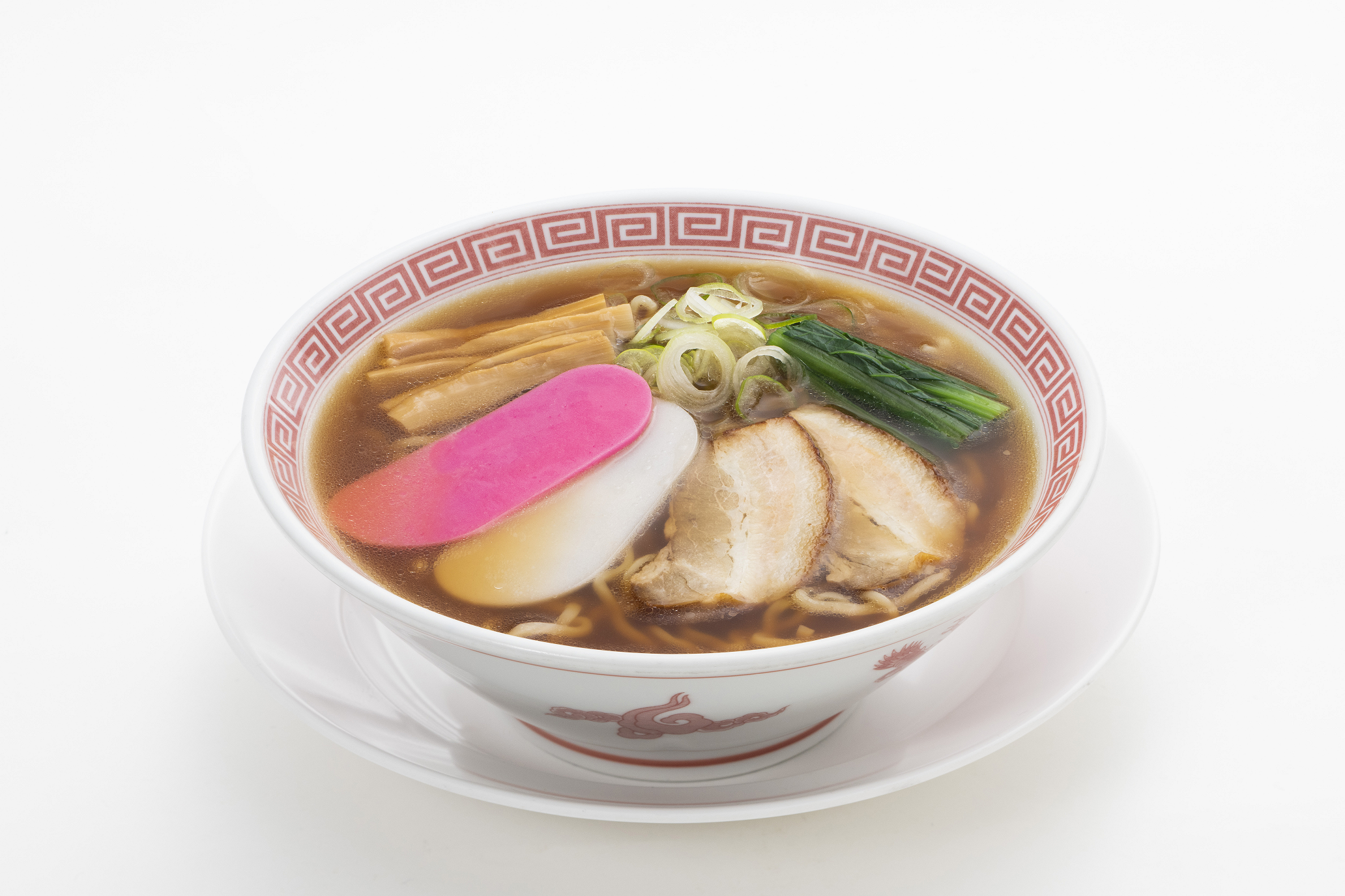 特徴:お正月を祝う紅白のおもちをトッピングしたしょうゆらーめん。