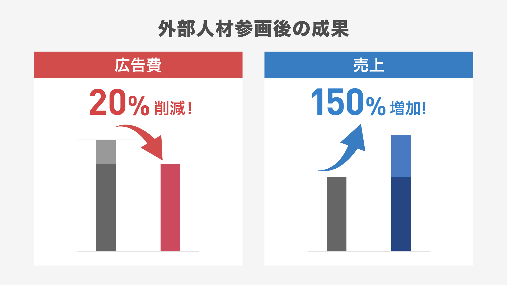 外部人材の紹介サービスはたくさんありますが、その中でもWEBマーケティング人材に特化しており、スキルの見極め力も高く、実際の面談で伴走できるイメージを持つことができた「ミエルカコネクト」の外部人材を活用することになりました。